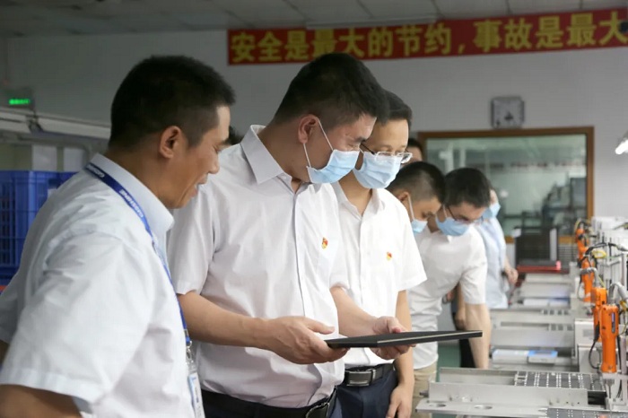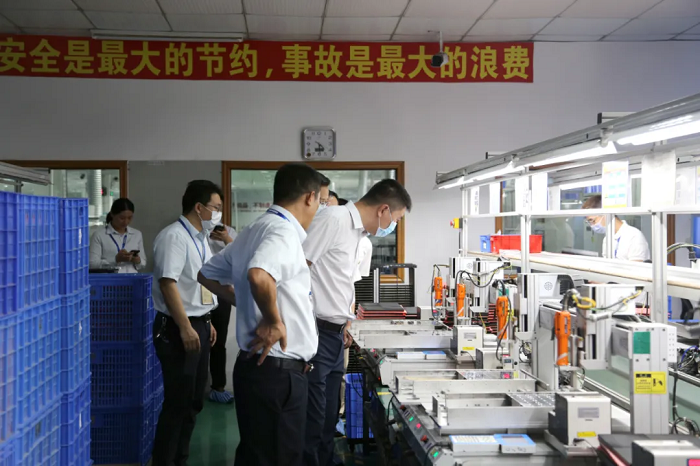 在張現峰、張永軍先生的陪同下,代金濤區(qū)長一行走進光祥制造中心現場進行實地考察,并親切地詢問光祥經營生產狀況,張現峰先生在旁一一解答,并向代金濤區(qū)長陳述了光祥近年的新變化。