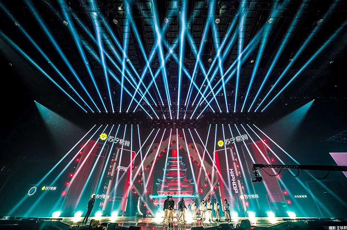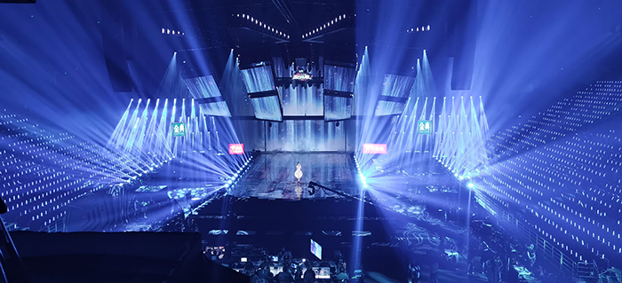 京東大制作,大手筆,將頂級的live現(xiàn)場搬到所有消費者眼前。為了讓直播體驗更加沉浸式,在舞臺效果方面,采用超400㎡光祥LC透明屏、220㎡AR地屏,結(jié)合數(shù)控飛屏、矩陣燈光的多種組合,營造燃炸的舞臺特效,體現(xiàn)豐富的空間層次變化。