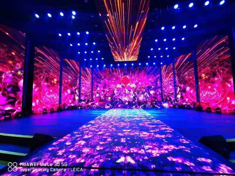 晚會使用W 3.91 系列和AR 4.81 系列,超高清的畫面顯示和超強抗壓抗磨損的黑色鋼化玻璃面罩地磚屏,為晚會增光添彩,每顆像素的顯示仿佛在空中跳躍,向西藏人民傳遞新年祝福。