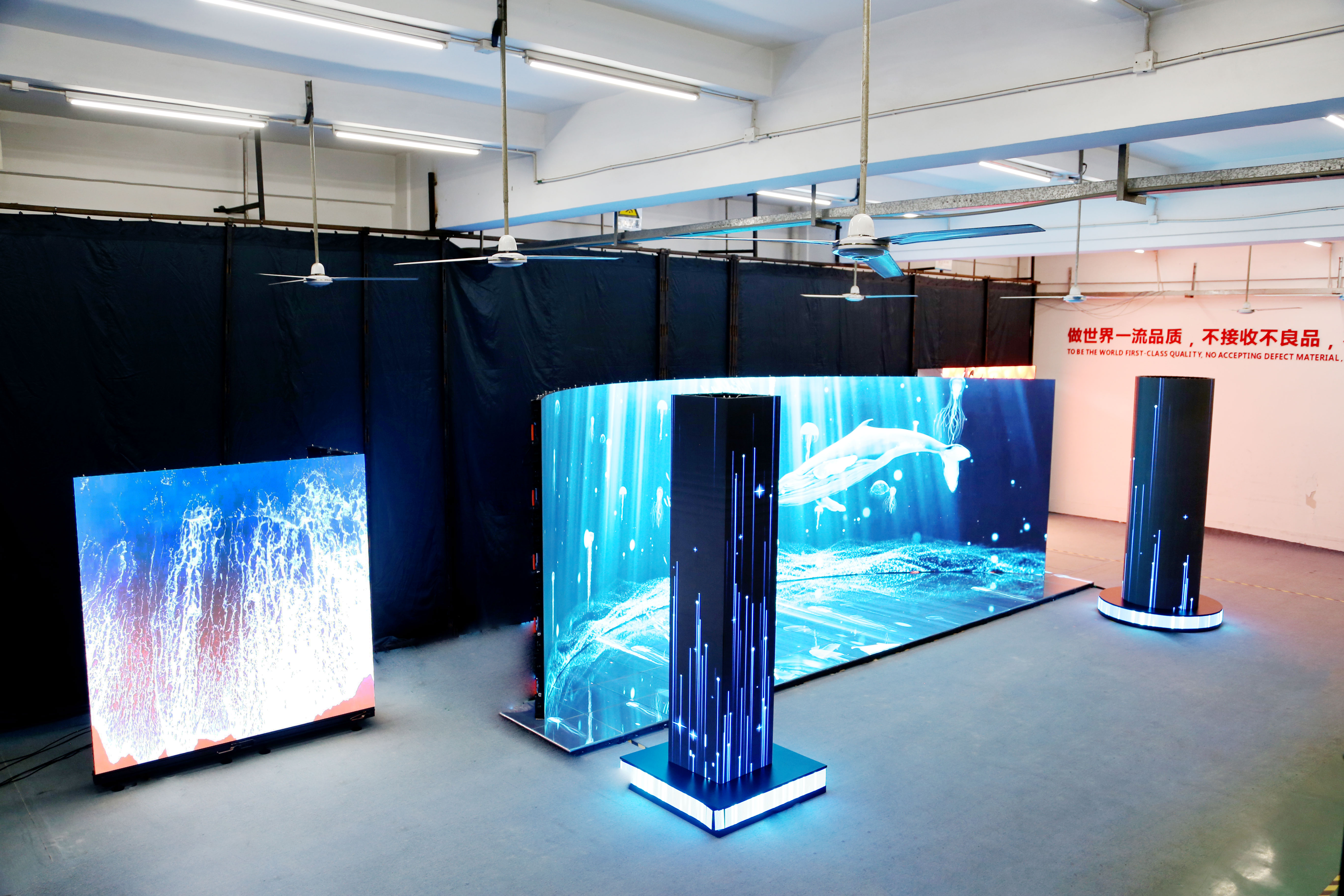 展覽場地搭建的XR沉浸式虛擬場景,使用的是PL2.6系列和CL2.6系列。PL2.6系列是光祥全新推出的一款室內LED顯示產(chǎn)品,可做常規(guī)拼接、直角拼接、立體拼接、弧形拼接以及與圓柱屏CL系列互拼。