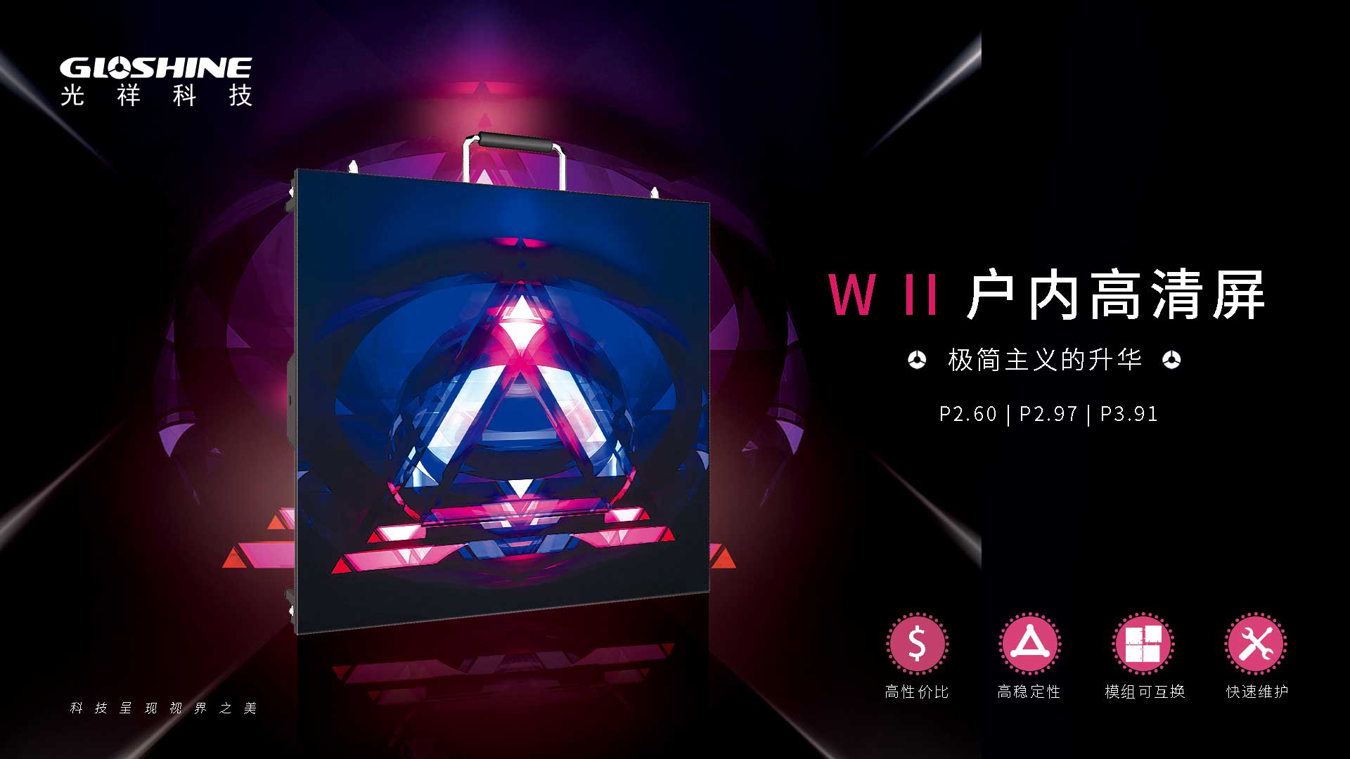 全高14米、底高4米、寬62米的大屏由光祥品牌W II系列戶內高清LED顯示屏拼接而成。該系列以極致色彩還原、超輕、超高強度、超高性價比著稱,自2020年問世以來便廣泛應用于車展、廣電演播、重要晚會、大型會議、論壇、發(fā)布會等。