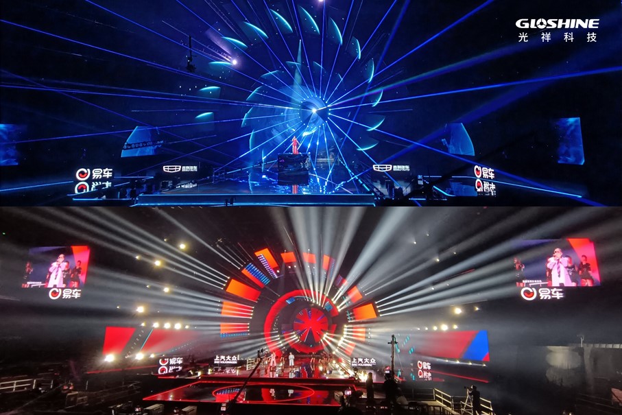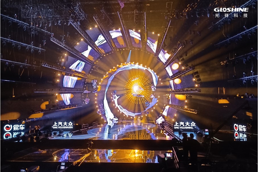 這場由浙江衛視聯合易車APP主辦的音視覺盛典,總共應用了1456平方米的光祥品牌LED顯示屏,其中VA系列黑冰透明屏800平方米、AR系列地磚顯示屏500平方米,ZE系列高清LED顯示屏156平方米?,F場視頻和LED顯示屏由浙江臻星舞臺工程有限公司、飛立洋(廣州)影視文化發展公司提供。