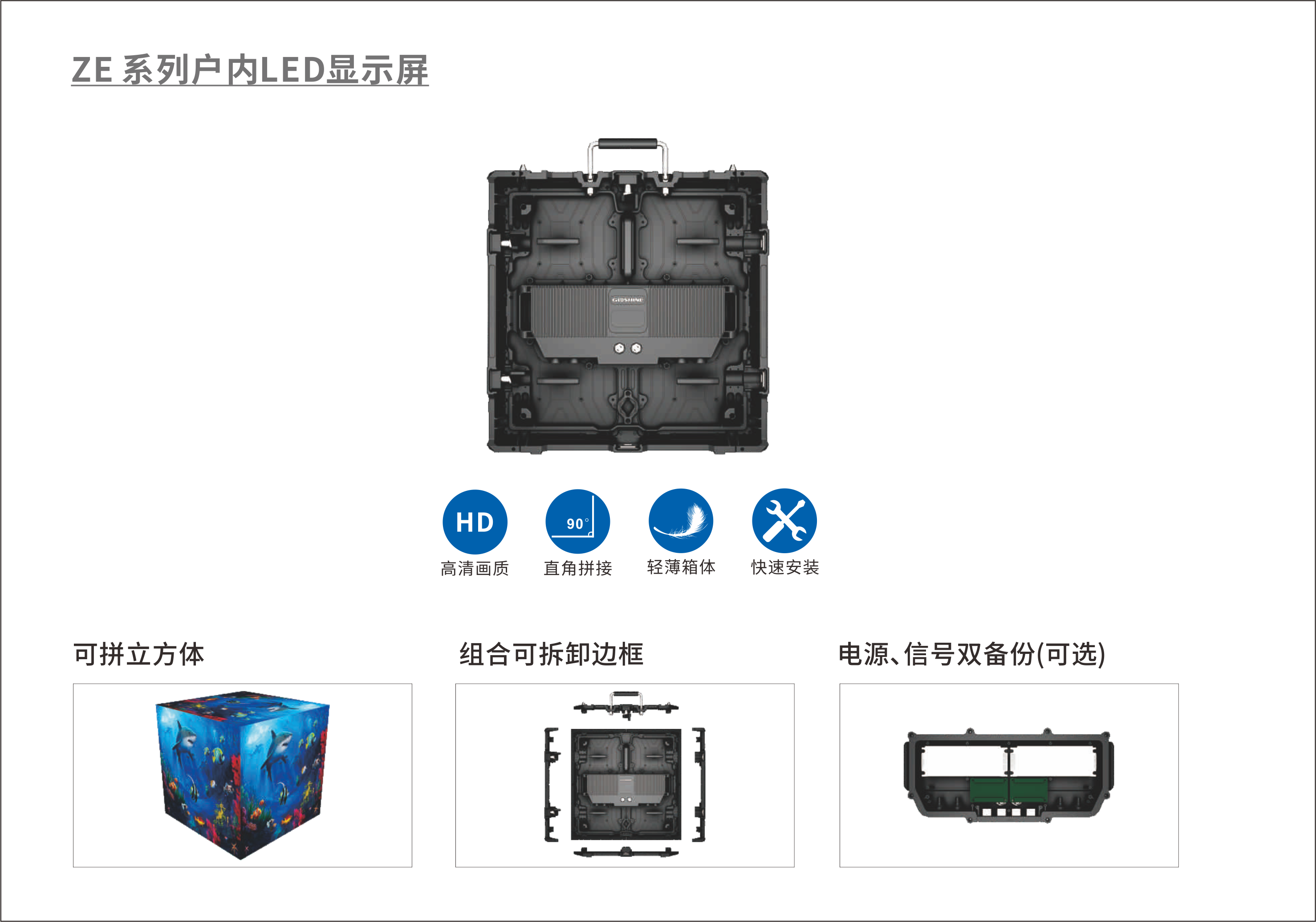 位居舞臺中間及兩邊的是ZE系列戶內LED顯示屏,時而展現圓形花體,時而充當時光機填充回憶,隨時切換畫面以假亂真。