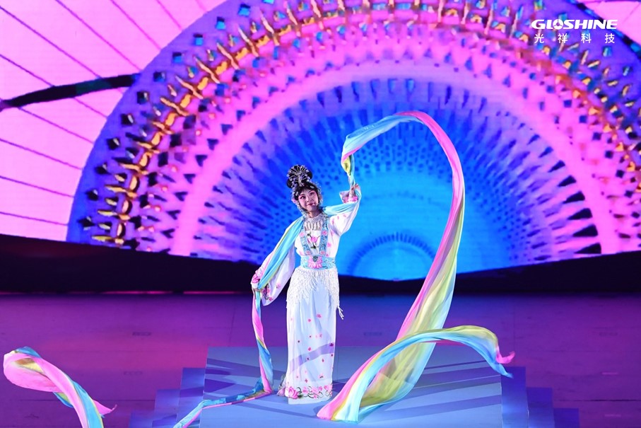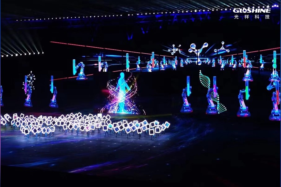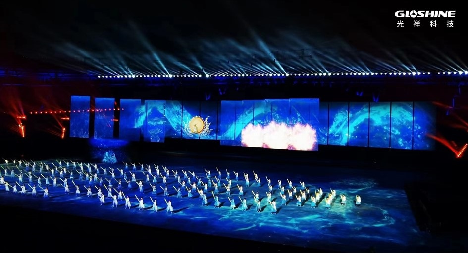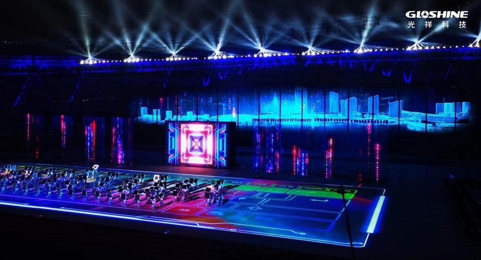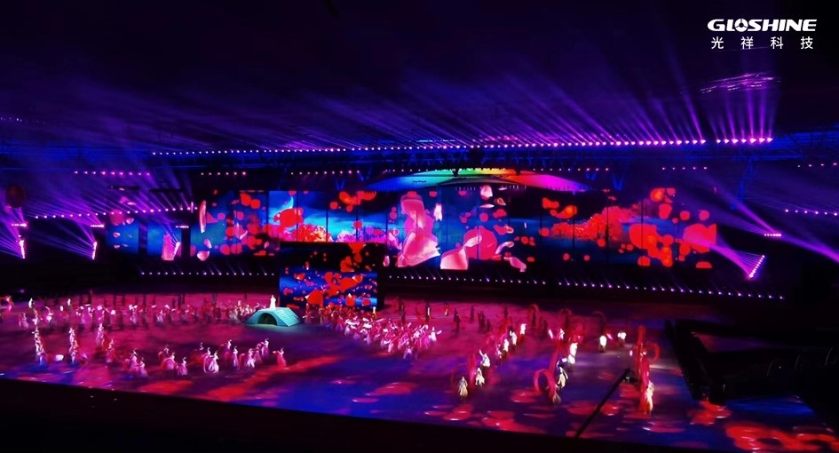 這場運動會開幕式總共應用了近2000平方米的光祥品牌大屏,其中ZS系列戶外專業舞臺LED顯示屏1792平方米,CB系列戶外碳纖維高清LED顯示屏142.5平方米。