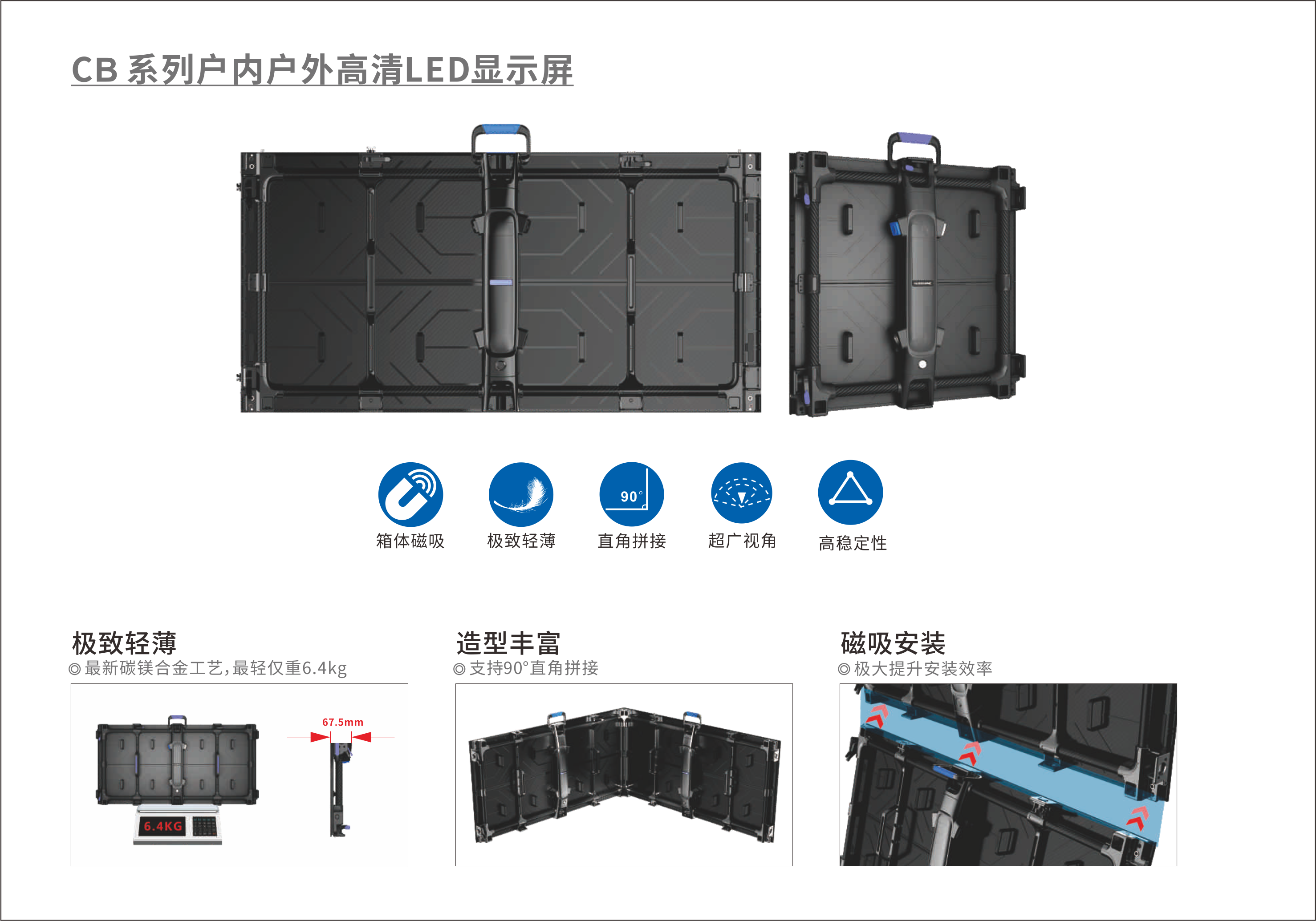 ZS系列厚度僅62cm,超輕致薄,超廣視角,高穩定性,多角度舞臺造型豐富多變,是戶外大型文體賽事、晚會舞臺常用的LED顯示屏。