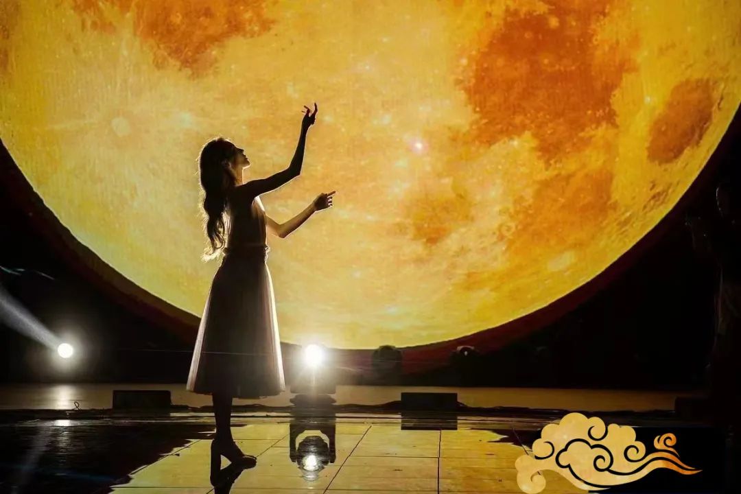 正是花好月圓時刻,360度圓形舞臺,將外景拍攝、虛擬XR技術與實景山水巧妙融合,充滿浪漫氣息。