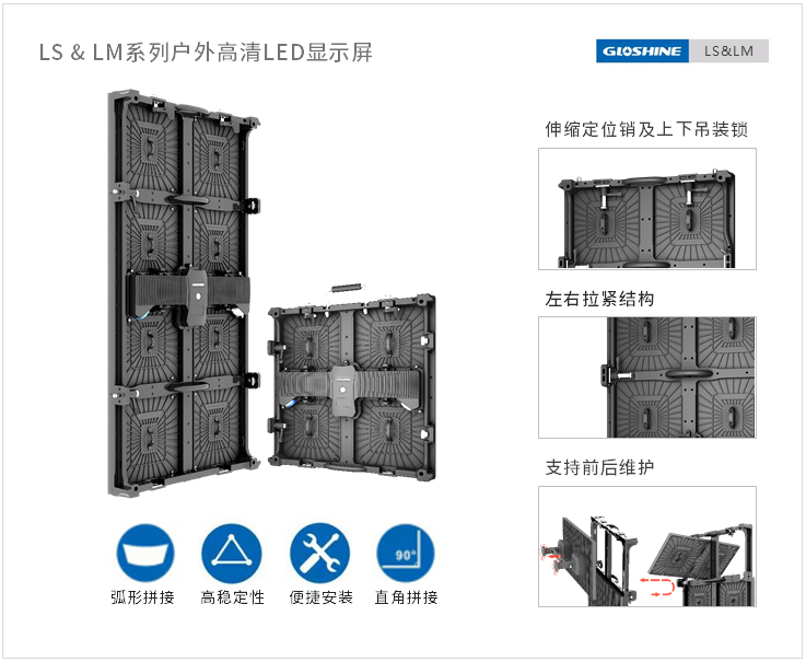 光祥LS&LM系列戶外高清屏色彩還原逼真、對比度、亮度佳,并有著優異的低灰顯示效果,光線柔和,性能穩定,是戶外舞臺常用的高清LED顯示屏。