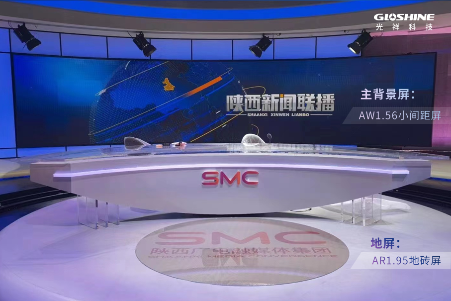 2021年,光祥科技與中視電視技術開發有限公司聯手建設新聞高清演播室,今年再度合作聯合打造全新《陜西新聞聯播》直播間。項目中,應用了光祥AW系列小間距屏、AR系列地磚屏、ZE系列高清屏,分別作為主背景屏、訪談背景屏、站播屏,以及播控桌地屏、頂部氛圍屏、會談間條形屏等,實現高清視頻現場播報。