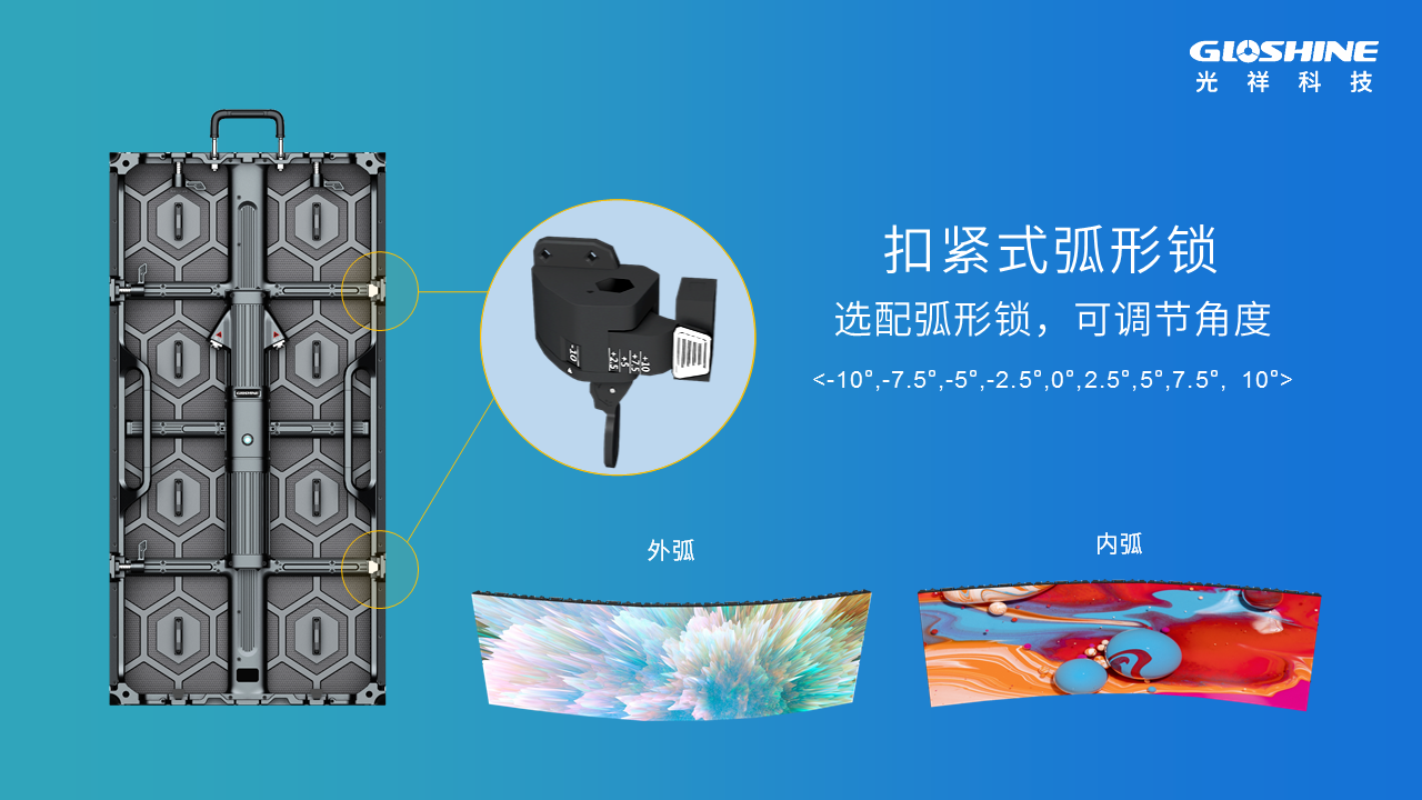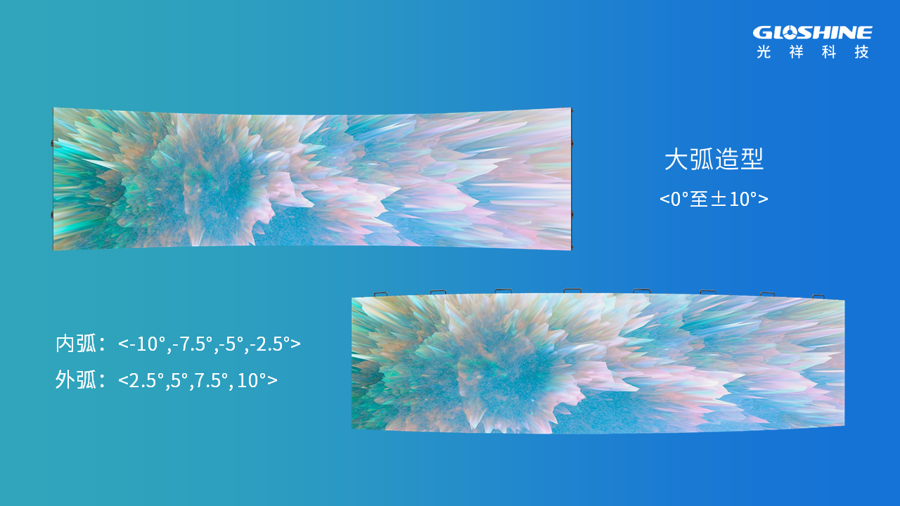 BE&BM系列高清屏斜角箱體可塑造0°至±10°大弧造型,內(nèi)弧外弧或同時塑造或分開塑造。
