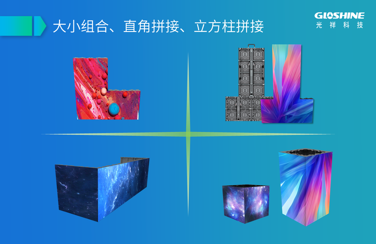 BE&BM系列高清屏可選直角、斜角、45°箱體,塑造內(nèi)弧、外弧等弧形造型毫無壓力,大小箱體可互拼,可與CL系列圓柱屏互拼,靈活組合,造型豐富多樣。