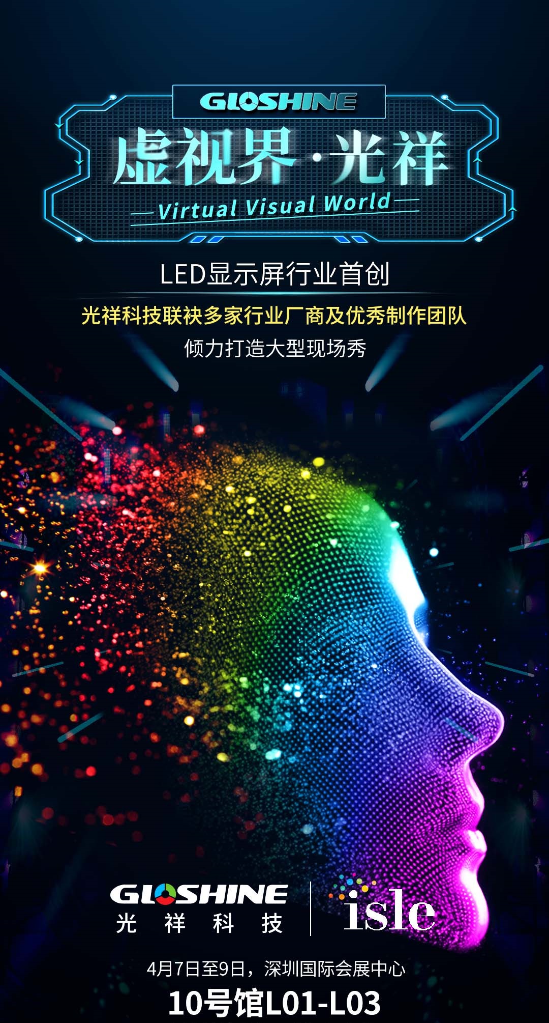 【ISLE2023】4月7日-9日,光祥科技聯(lián)袂多家行業(yè)廠商及優(yōu)秀制作團(tuán)隊(duì),打造的大型現(xiàn)場(chǎng)視覺秀——“虛視界·光祥”!以先進(jìn)的舞美設(shè)備技術(shù),展現(xiàn)極致舞美視效和超時(shí)空虛擬融合現(xiàn)實(shí)大秀,歡迎蒞臨品鑒。