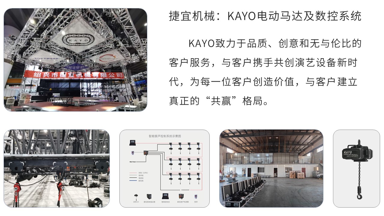 捷宜機(jī)械KAYO電動(dòng)馬達(dá)及數(shù)控系統(tǒng),KAYO致力于品質(zhì)、創(chuàng)意和無與倫比的客戶服務(wù),與客戶攜手共創(chuàng)演藝設(shè)備新時(shí)代,為每一位客戶創(chuàng)造價(jià)值,與客戶建立真正的“共贏”格局。