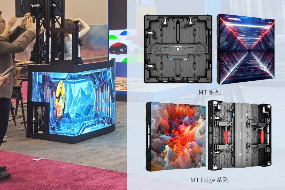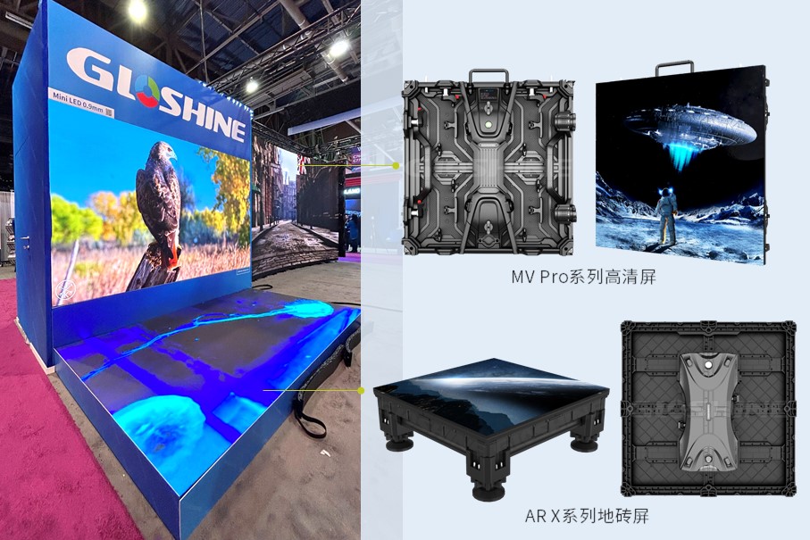 全彩LED顯示屏作為廣電演播、影視拍攝必不可少的設(shè)備,是NAB Show的最主要展示品之一。光祥科技在本次NAB Show上,主舞臺交給了MV Pro系列專業(yè)XR虛擬攝影顯示屏和X Pro系列小間距屏、AR X系列地磚屏,由MT及MT Edge塑造的裸眼3D屏和曲線屏陳設(shè)側(cè)邊,而BD系列小間距工程屏則在主舞臺背面。