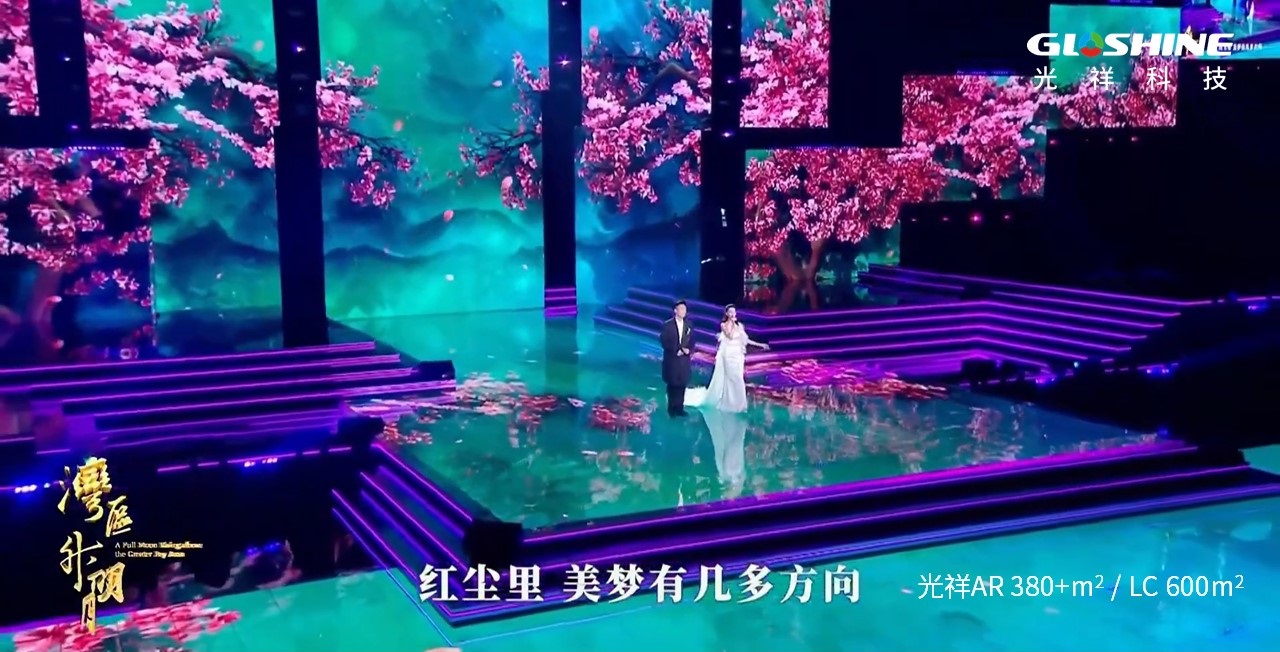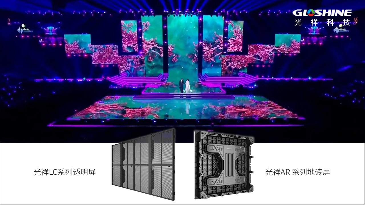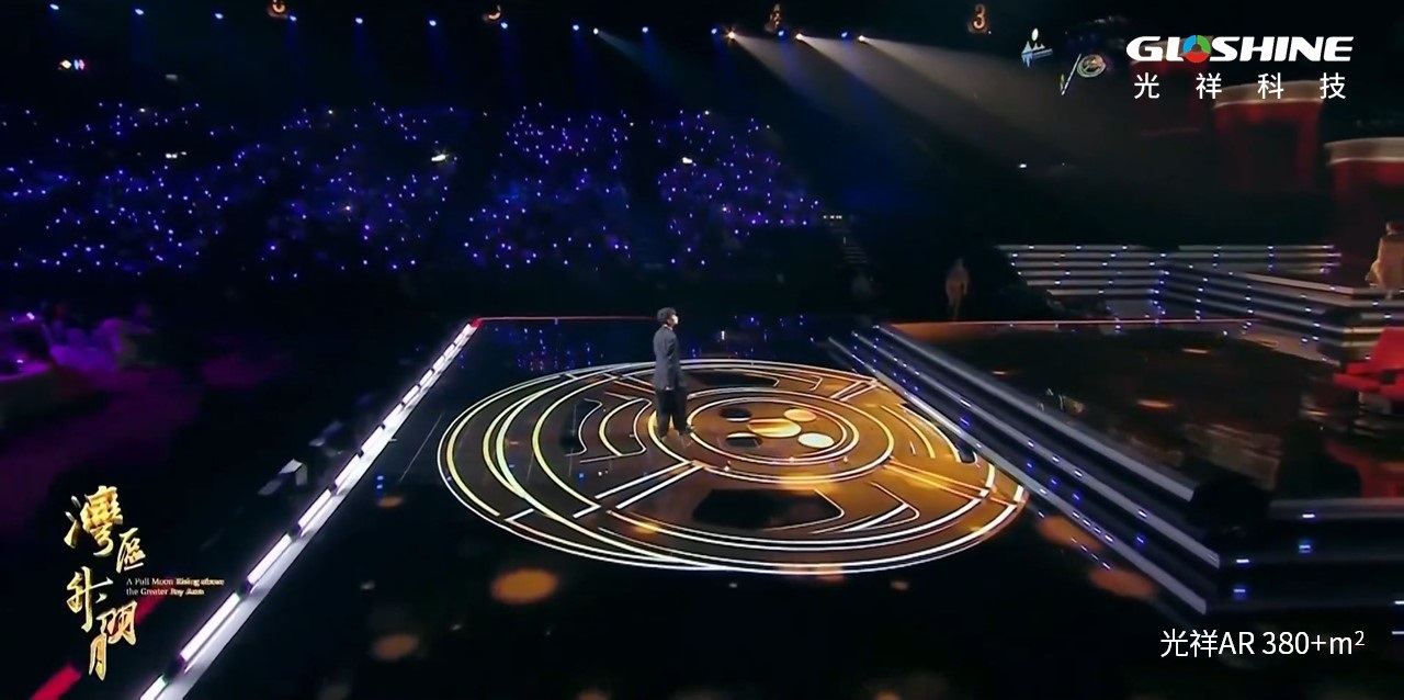 光祥AR系列地磚屏塑造的舞臺(tái)地面同樣美侖美奐,從背景屏幕底部往前探索,向前拓展,寬敞開(kāi)闊。光影流螢,與立面背景大屏共同營(yíng)造極致天空之鏡盛世美景,時(shí)而星空滿布、銀河渺渺,時(shí)而星海明月、水流漾漾。