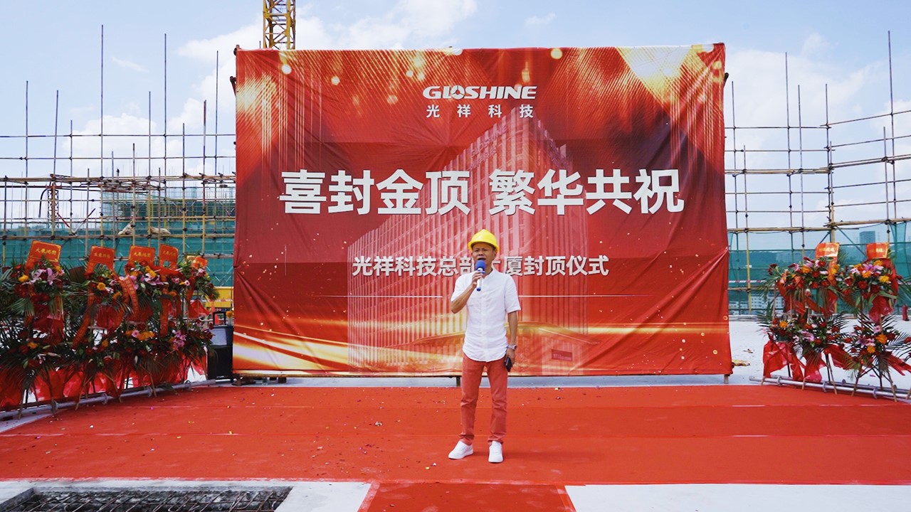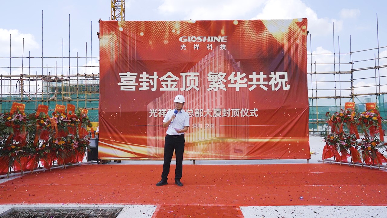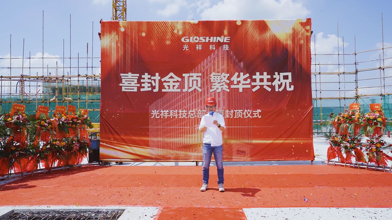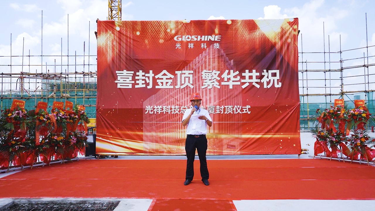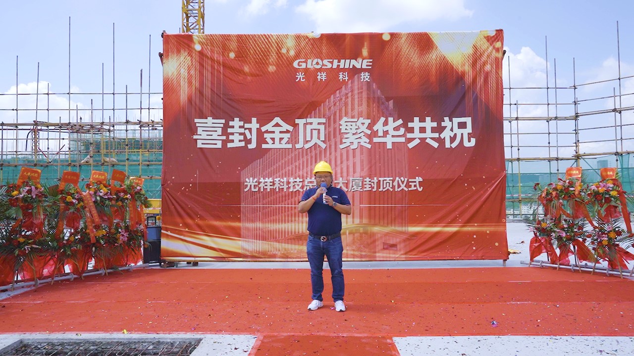 11時18分,儀式正式開始,光祥科技張現峰董事長發表講話,向前來參加封頂儀式的各位領導及朋友們致以最熱烈的歡迎,并感謝參與大廈建設的每一個人。