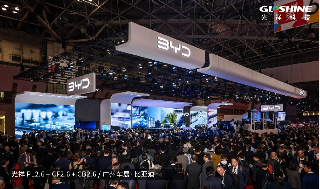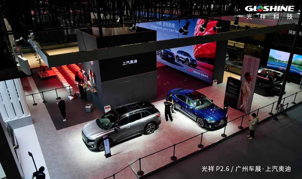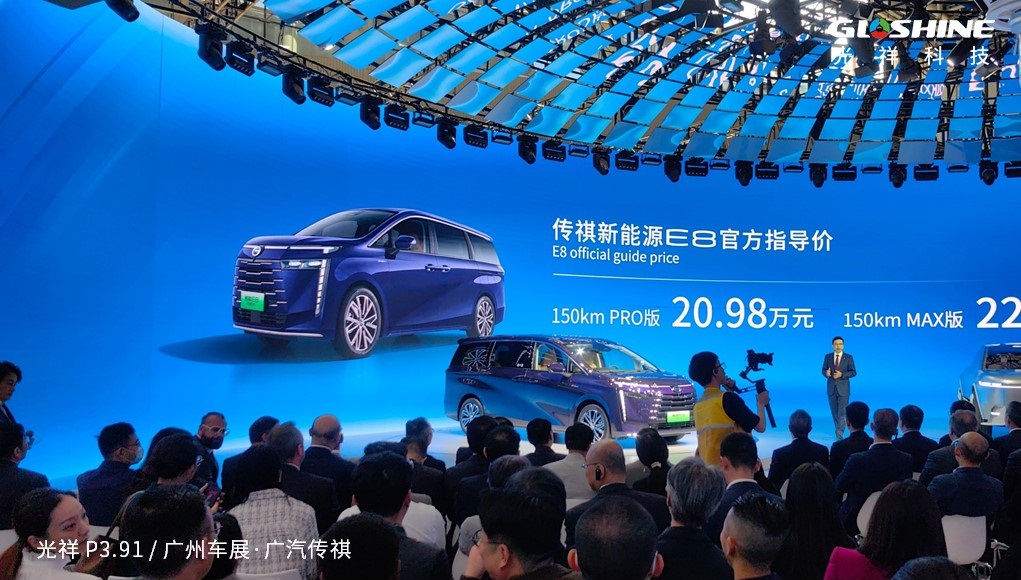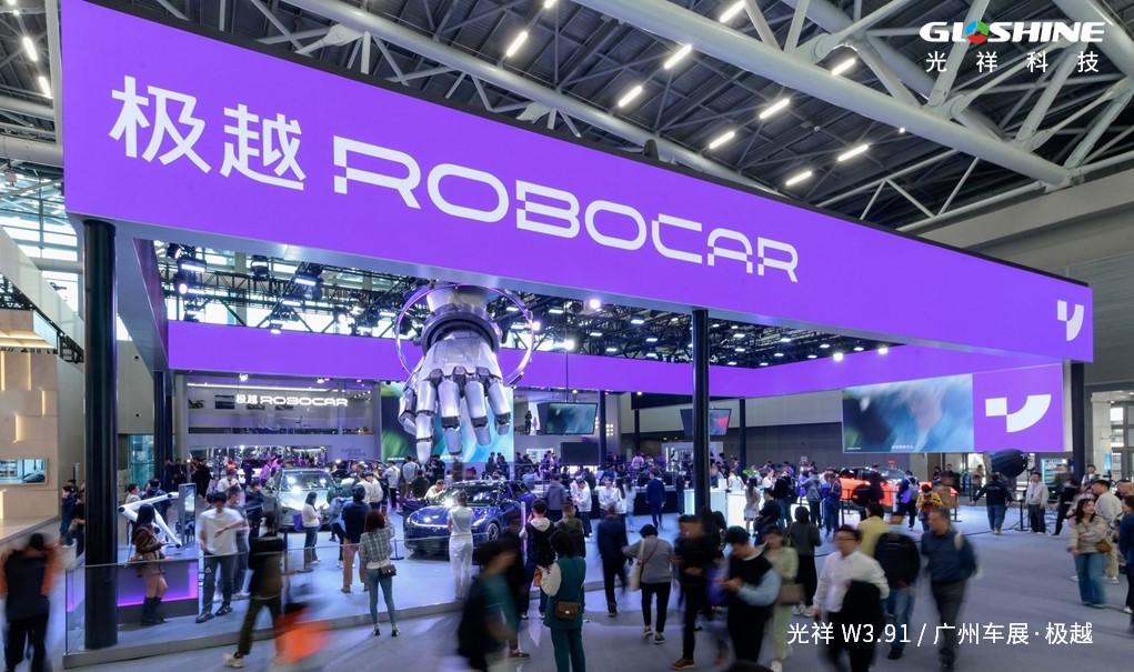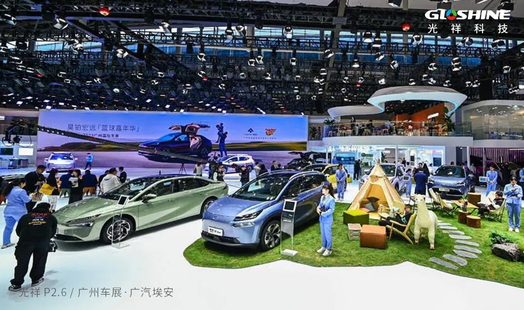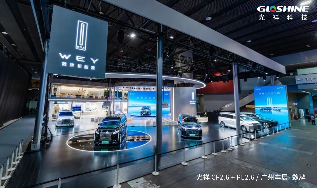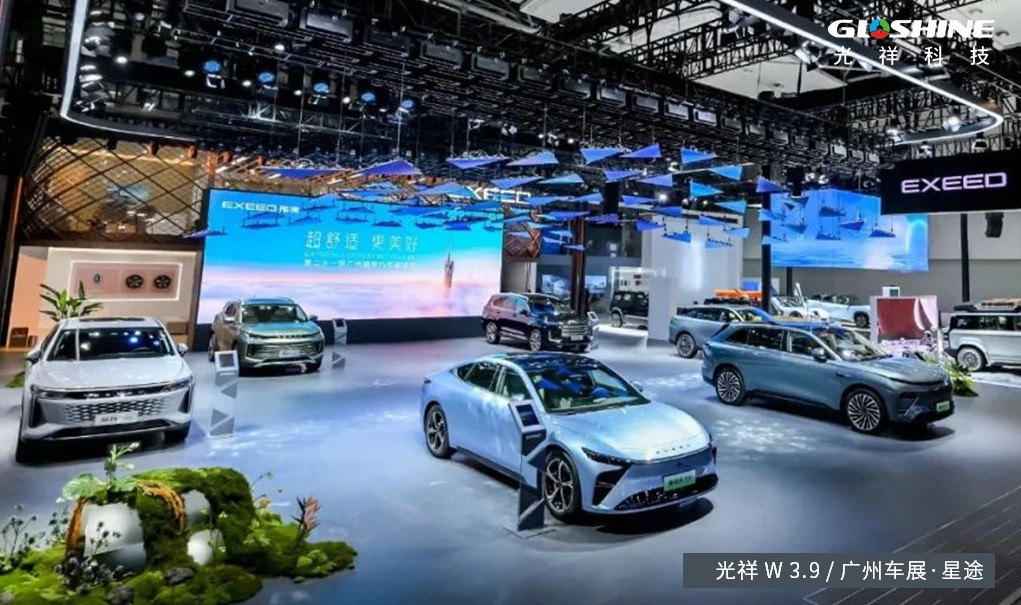 作為汽車行業(yè)的年終盛會,廣州車展以“新科技·新生活”為主題,展出面積達22萬平方米,展出汽車數量共1132輛,包括全球首發(fā)汽車59款、新能源車469輛等。光祥大屏以高品質、超穩(wěn)定、多造型的產品特性,持續(xù)多年為眾多品牌車企提供展覽現場視效建設,助力各大品牌展位呈現高科技沉浸式體驗氛圍。