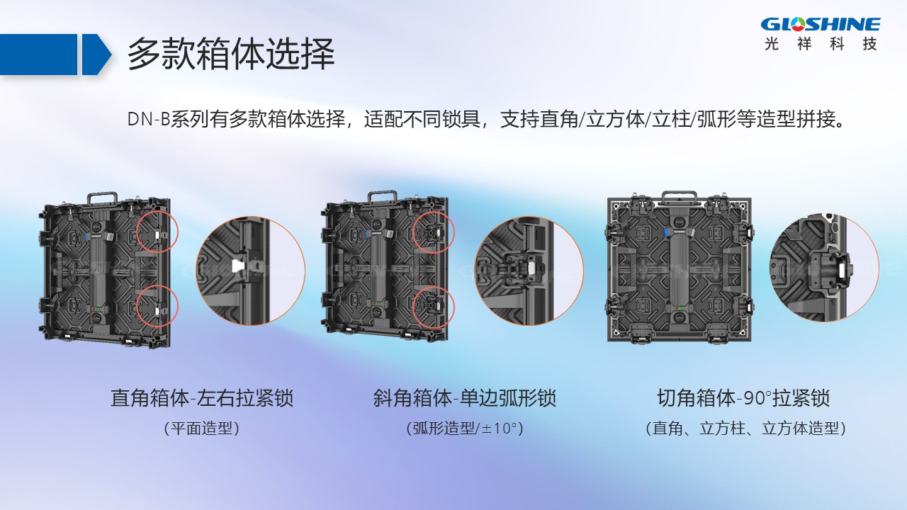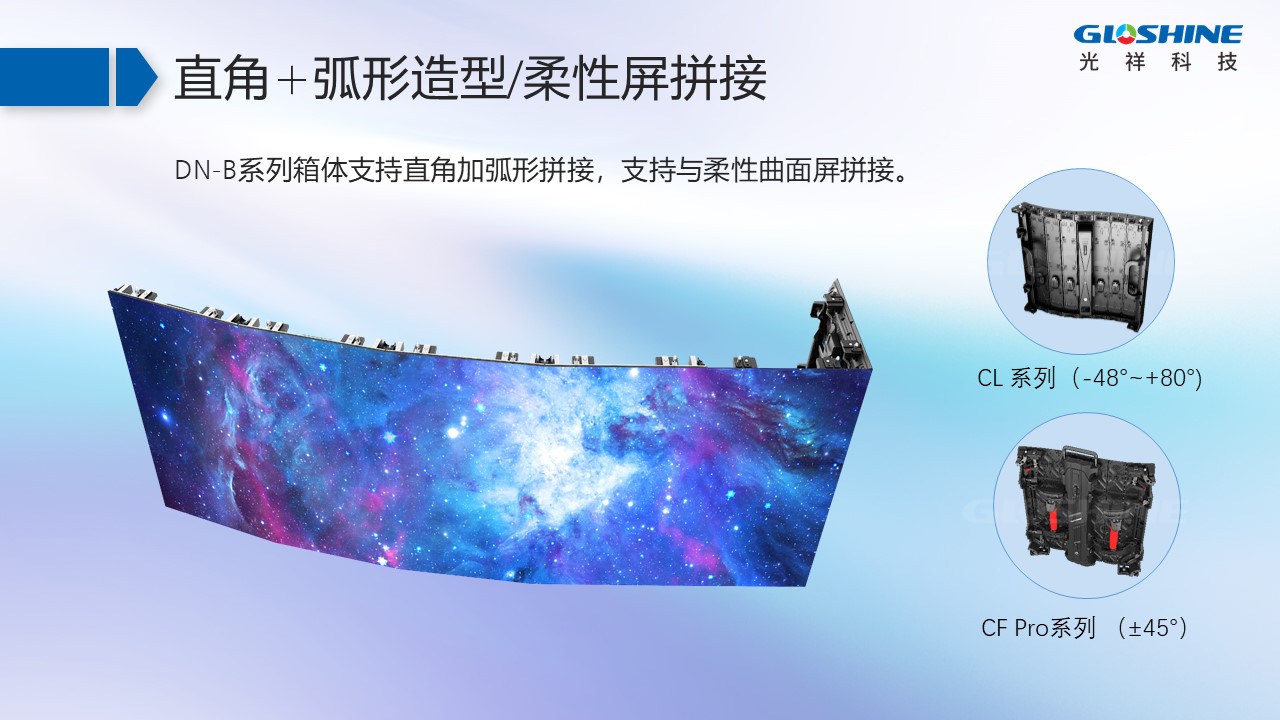DN-B系列戶內(nèi)高清LED顯示屏,超輕超薄箱體、經(jīng)典工業(yè)設(shè)計(jì)、快速安裝維護(hù)、造型豐富多樣,支持直角/立柱/弧形等。