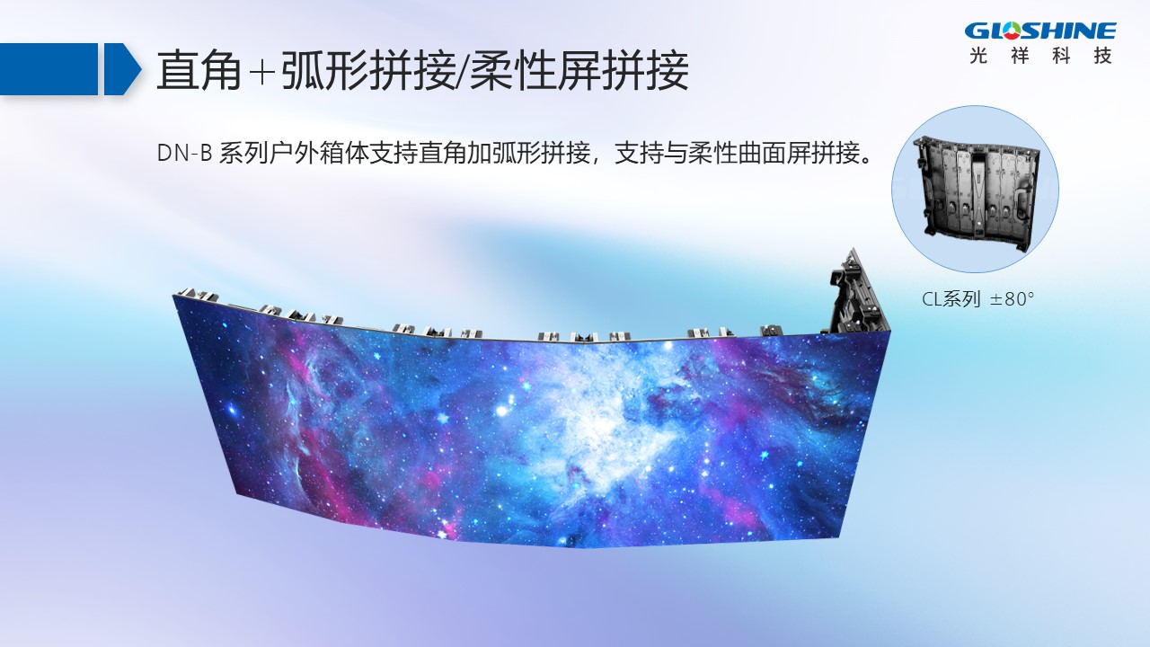 DN-B系列戶外高清LED顯示屏,超輕超薄箱體、經(jīng)典工業(yè)設(shè)計、快速安裝維護、造型豐富多樣,支持直角/立柱/弧形等。