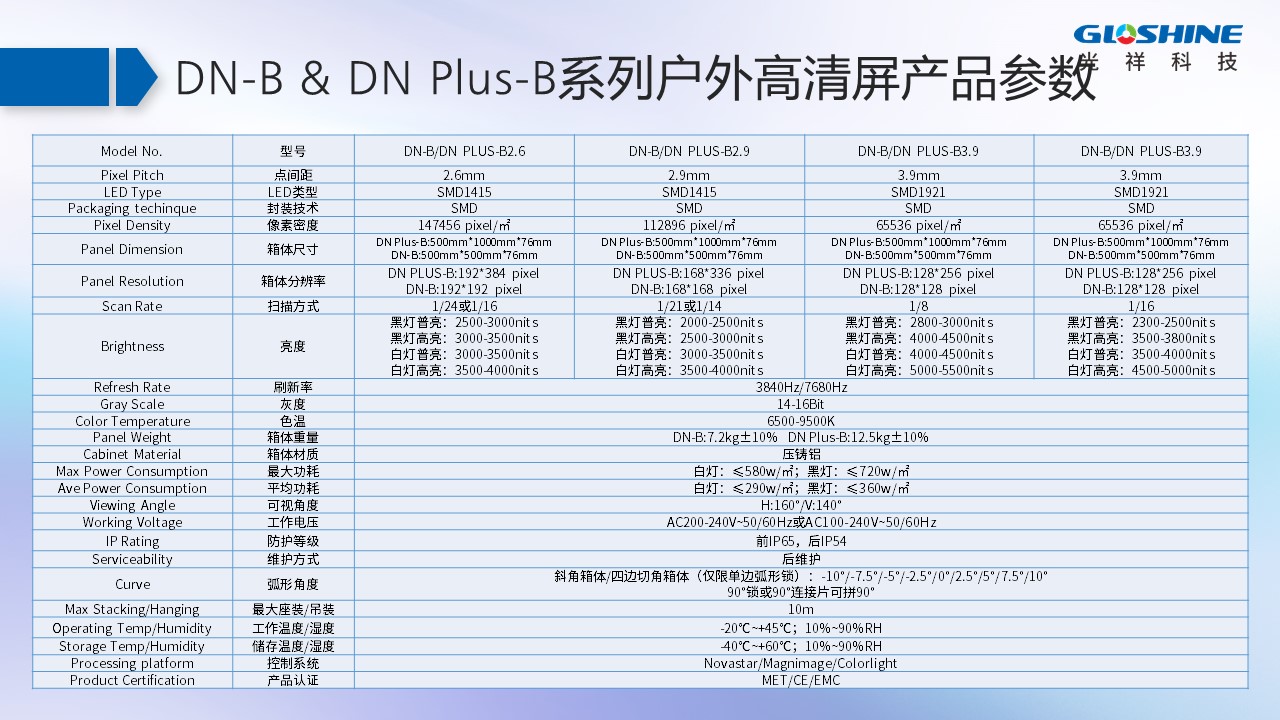 DN-B系列戶外高清LED顯示屏,超輕超薄箱體、經典工業設計、快速安裝維護、造型豐富多樣,支持直角/立柱/弧形等。